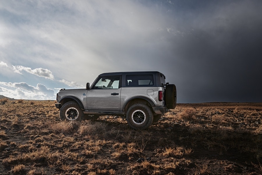 A classic Bronco® for today's outdoor enthusiasts. The iconic square shape. Radical short approach and departure angles with a wide stance for added stability. And extra long doors that make rear seat access easier for your passengers.
