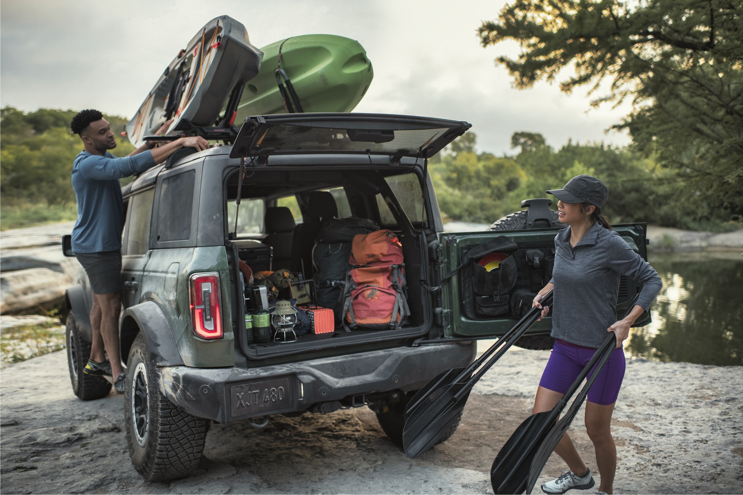 Your iconic Bronco®, just a bit more family-friendly. Seats five, with a longer wheelbase. Remove all four doors and stow them easily in the cargo area.