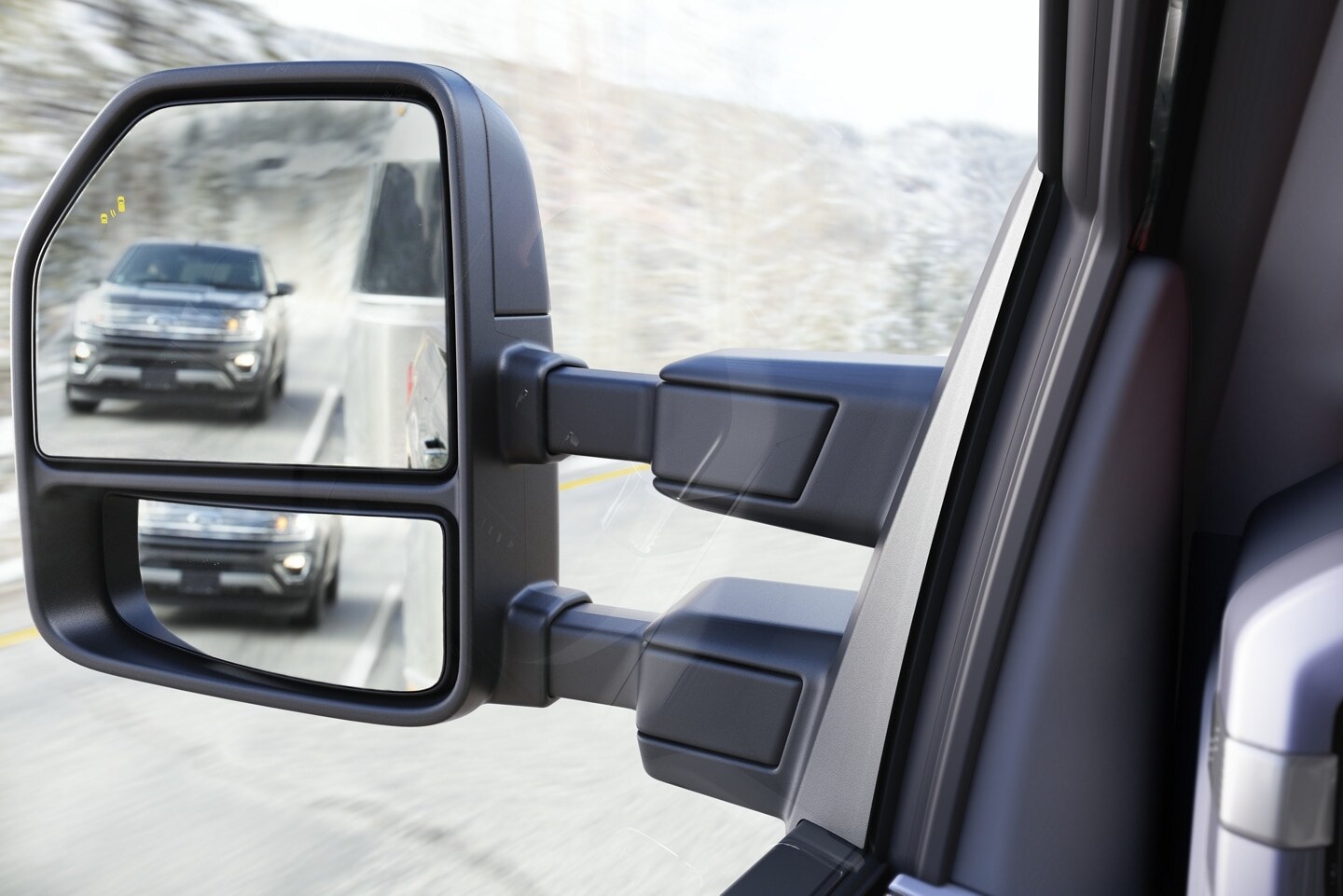 Keep an eye on that big piece of real estate behind you with available trailer tow mirrors. And when you're about to merge, do it with confidence. Available BLIS® (Blind Spot Information System) with Trailer Coverage alerts you if a vehicle is detected in the blind spots of your truck or trailer.†